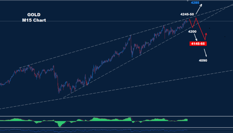 الاختراق دون 4145 يُتوقع المزيد من الانخفاض، مع وجود دعم عند 4090.