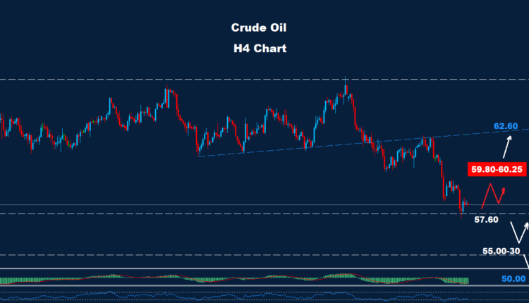 يواجه السوق فرصة لتداول بين مستوى الدعم 57.60 ومستوى المقاومة 59.80-60.25.