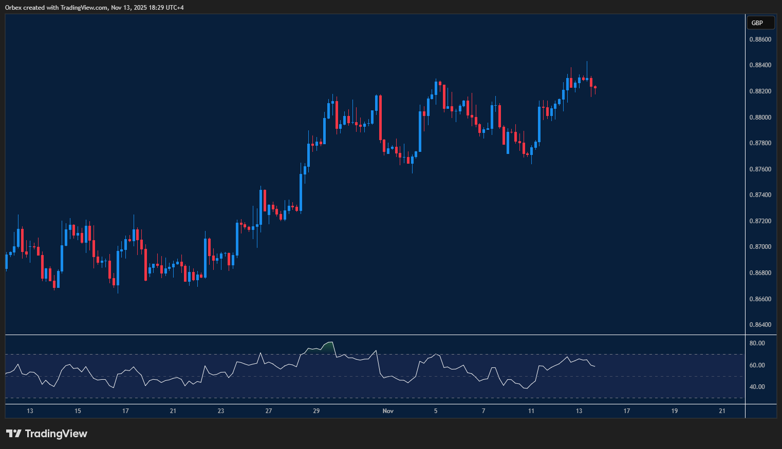وفي الوقت ذاته، خفّ بريق اليورو أمام الجنيه الإسترليني بعد صعود قوي تجاوز مائة نقطة، إذ فقد الزوج جزءًا من زخمه عند اقترابه من مستوى 0.8800. ويبدو أن السوق لا يزال مترددًا بين استمرار التصحيح أو استئناف الصعود، حيث تمثل منطقة 0.8780 أول مستويات الدعم التي قد توقف الانخفاض مؤقتًا، في حين يعيد الهبوط دون 0.8750 سيناريو التراجع الأوسع نحو 0.8660. أما إذا عاد الاتجاه الصاعد للسيطرة، فقد يستهدف الزوج مستويات لم يصل إليها منذ سنوات متجاوزًا حاجز 0.8900.