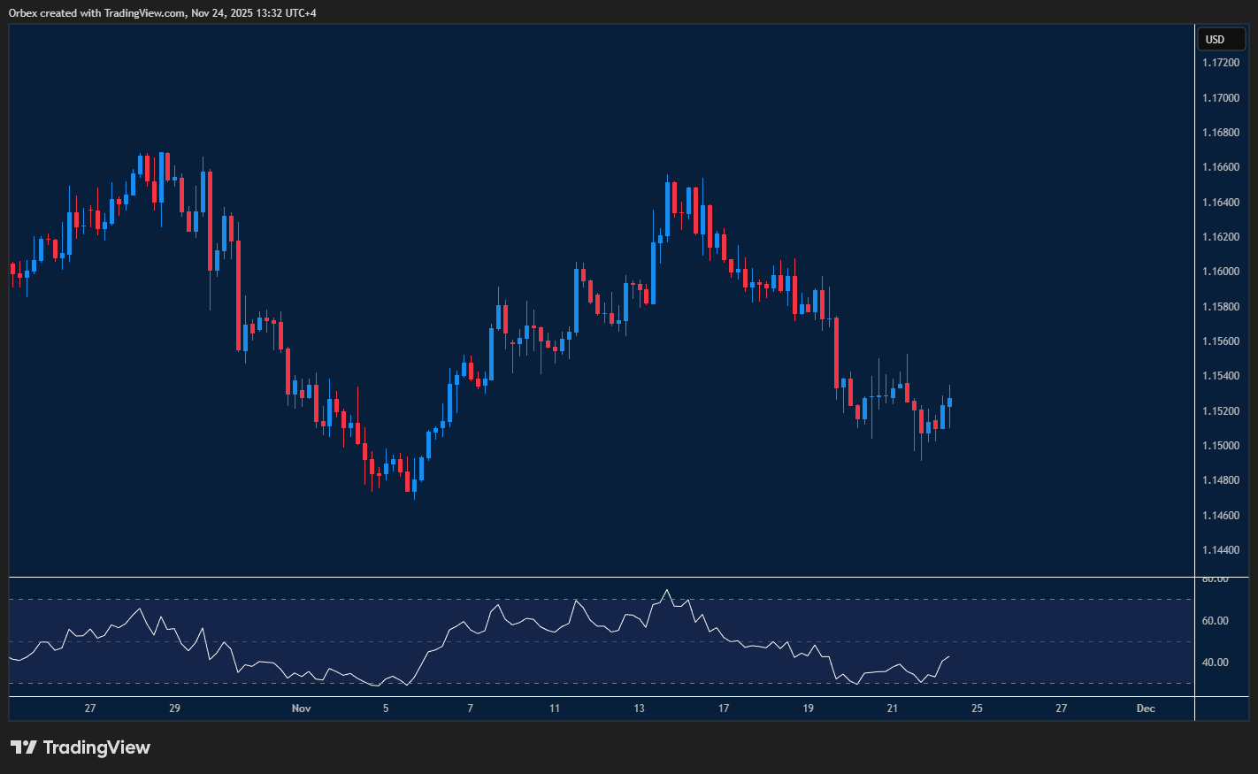 لا يُظهر الدولار الأمريكي أي نية للتراجع بعد أن لامس مستوى 1.1500. الاختراق الطفيف فوق 1.1530 منح المشترين بعض المساحة للتنفس، ودفع جزءًا من البائعين إلى تقليل مراكزهم، لكن ذلك لا يكفي وحده لعكس الاتجاه. فالاختبار الحقيقي لقدرة المشترين على استعادة السيطرة لن يتحقق إلا إذا تجاوز السعر المقاومة القوية عند 1.1580. أما على الجانب المقابل، فإن كسر مستوى 1.1500 بشكل واضح سيجعل الارتداد الأخير بلا قيمة، ويفتح الطريق أمام هبوط أعمق نحو 1.1440.
