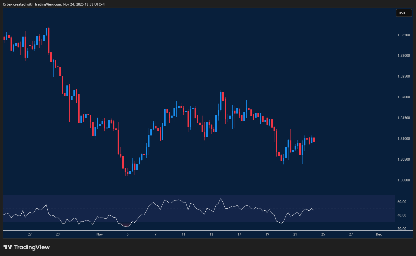 يتحرك الجنيه الإسترليني منذ بداية الشهر تحت ضغط مستمر من قوة الدولار. ووصل الزوج إلى مفترق طرق بعد أن سجّل قاعًا مزدوجًا عند 1.3040، قبل أن يصطدم بمقاومة عند 1.3100. أي محاولة لتعزيز التعافي تحتاج إلى بقاء السعر فوق 1.3150؛ أما إذا فشل المشترون في ذلك، فإن كسر القاع المزدوج قد يفتح الباب لتراجع أعمق نحو 1.3000.