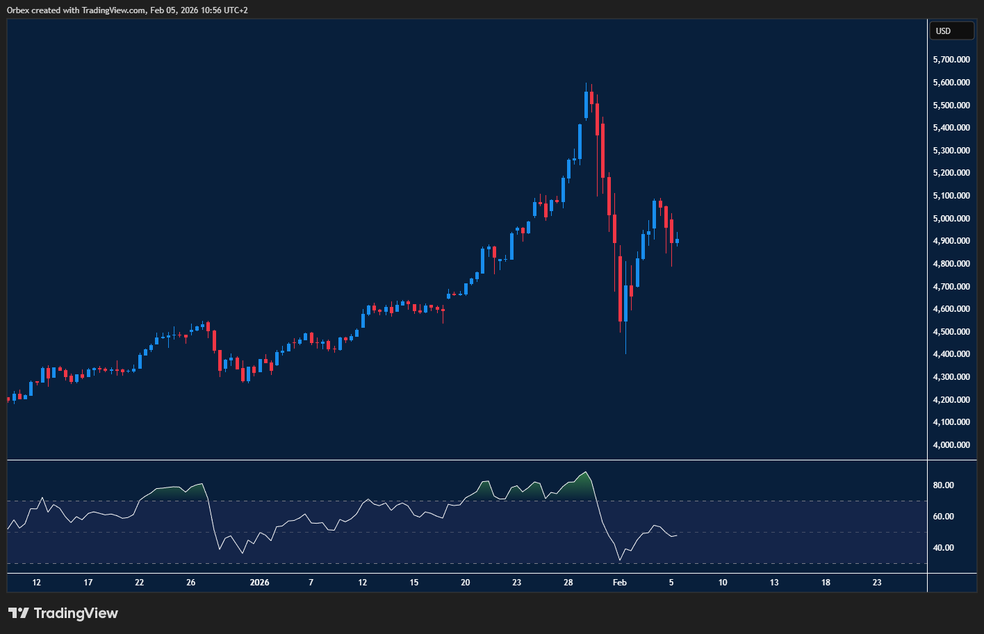 يبحث المعدن الأصفر عن محفزات جديدة وسط استمرار التقلبات السعرية؛ إذ إن تصاعد المخاطر الجيوسياسية واحتمالات التحول السياسي قد تضع الذهب أمام موجة بيعية إضافية. وفي ظل حالة “الارتباك السعري” التي تفرض على المتداولين سرعة الدوران، يتطلب تأكيد المسار الصاعد اختراقاً واضحاً لمستويات 5100. ومن المحتمل أن تعزز بيانات التضخم المرتقبة هذا الأسبوع من قوة الدولار، مما يجعل المستوى 4500 منطقة دعم حرجة للذهب.