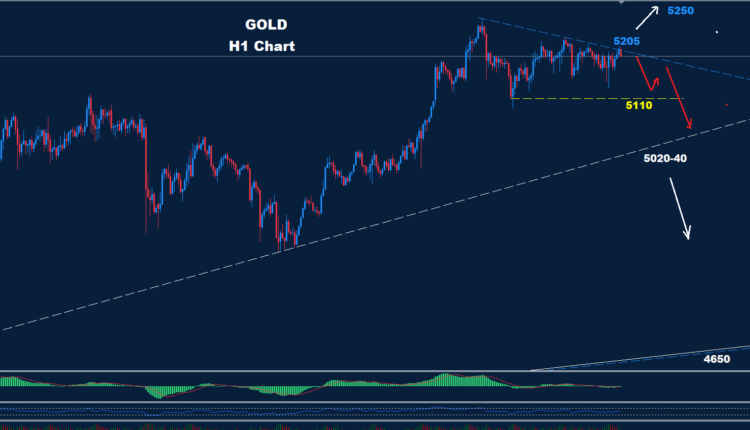 تشير مؤشرات تداول الذهب خلال اليوم إلى احتمال حدوث تصحيح هبوطي آخر قد يؤثر على السوق طالما بقي سعر الذهب دون مستوى المقاومة 5205. سيواجه السوق مستويات دعم عند 5160 و5110، مما قد يدفع السوق نحو تصحيح ارتدادي. في حال تراجع السوق تحت 5094، يُتوقع مزيد من الهبوط نحو 40-5020. في حال تجاوز السعر 5205، قد يرتفع السوق، بينما قد يدفع مستوى المقاومة 5250 السوق نحو تصحيح هبوطي آخر. في حال تجاوز السعر 5250، يُتوقع مزيد من الارتفاع نحو 5320.