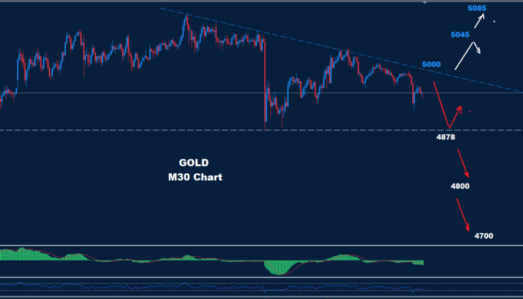 في حال انخفاض السعر دون 4878، فمن المتوقع مزيد من الانخفاض نحو 4800 و4700.