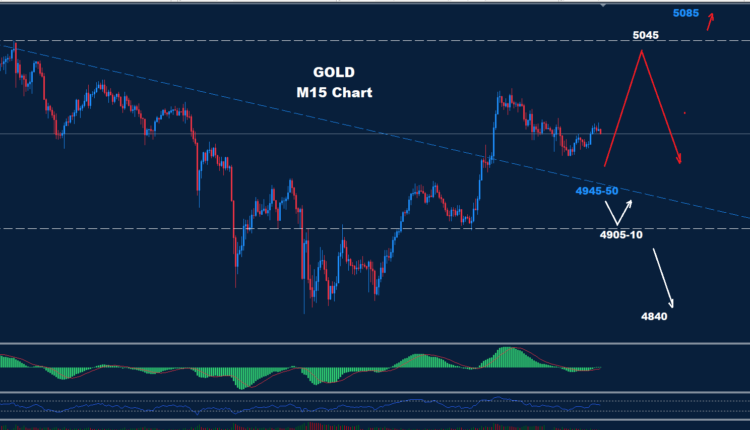 تمكن الذهب أمس من اختراق مستوى المقاومة 70-4945 ، مما قد يدفعه لمزيد من الارتفاع، مع وجود مقاومة حول مستوى 5045، الأمر الذي قد يُهيئ منطقة تداول باتجاه 4950.