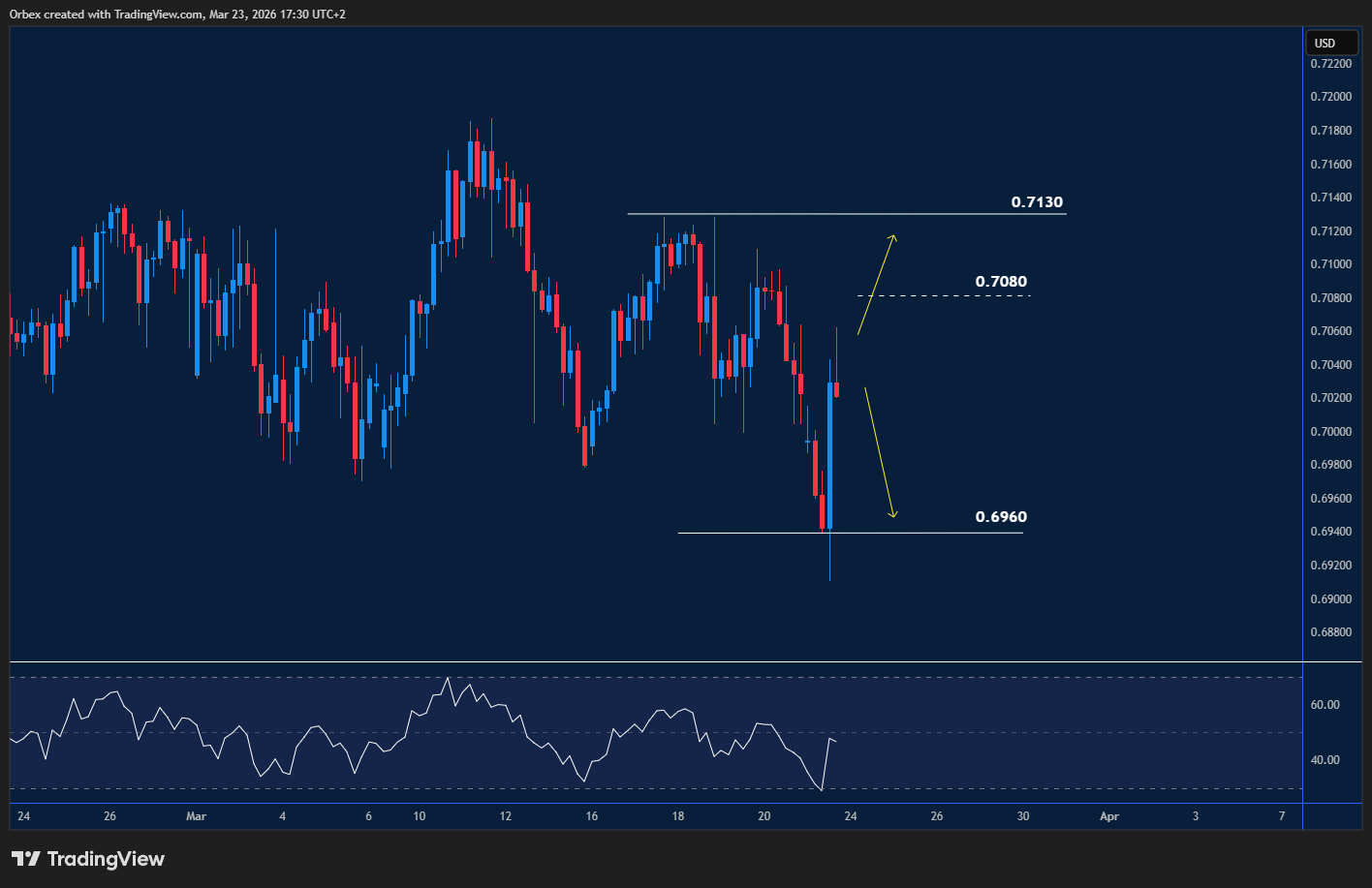 يواصل الدولار الأسترالي رحلة تعافيه بالتزامن مع فقدان العملة الخضراء لزخمها. وقد أسهم الارتداد من مستوى الدعم اليومي البالغ 0.6960 في إعادة الأسترالي إلى موقع المبادرة. وفي طريق الأسعار نحو قمة التأرجح التالية عند 0.7130، تبرز مستويات 0.7080 كأولى العقبات التي يتوجب تجاوزها. ومع زحف مؤشر القوة النسبية نحو مناطق ذروة الشراء، قد تتسلل الضغوط البيعية إلى المشهد. وفي هذه الحالة، سيُشكل مستوى 0.7030 مقاومة جديدة من شأنها كبح جماح الزخم الصعودي.