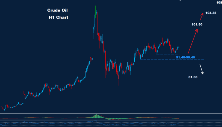 كما هو موضح في الرسم البياني، يواجه السوق منطقة دعم حول 90.40-91.40، والتي قد تُبقي على مساره نحو الأهداف 101.50 و104.35.