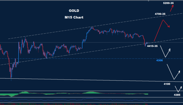 أما في حال انخفاض السعر دون مستوى 4415، فمن المتوقع مزيد من الهبوط، مع وجود دعم حول مستوى 4306، مما قد يُبقي على فرصة تصحيح ارتدادي.