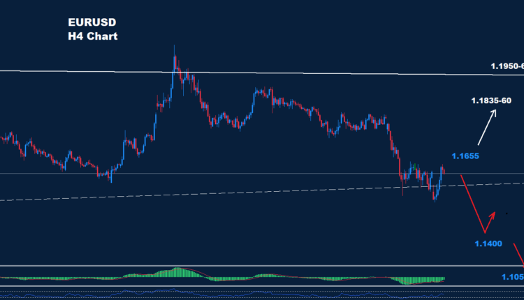 تمكن اليورو من التراجع عن مستوى المقاومة 1.1655، بينما اقترب يوم الجمعة الماضي بالقرب من مستوى الدعم والهدف 1.1400 قبل أن يرتد كما كان متوقعًا.