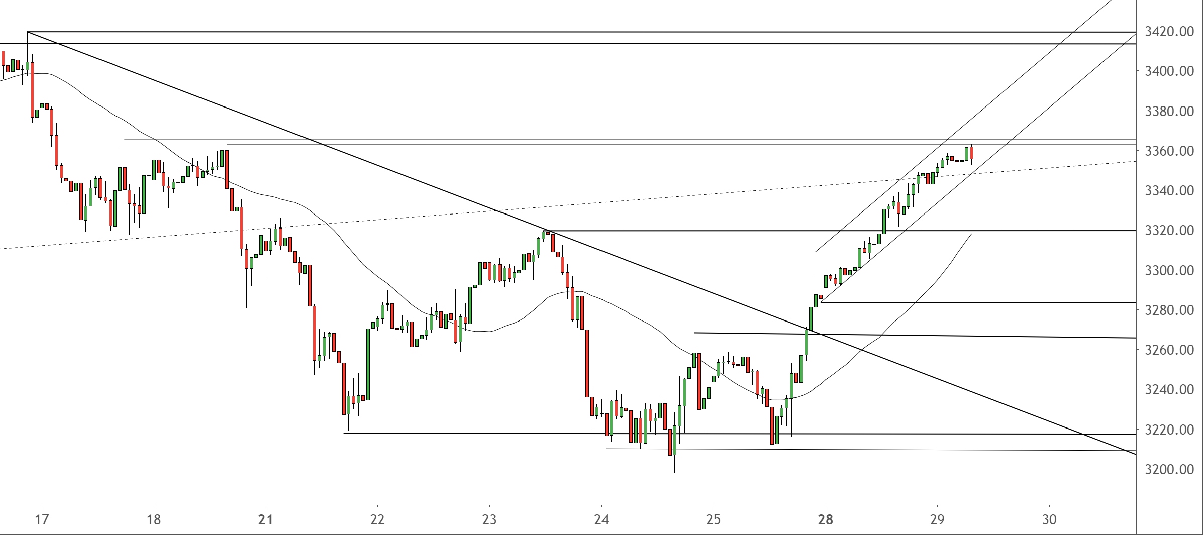 Major-Widerstand: 3.363/3.365,25 Punkte / 3.414/3.419,5 Punkte