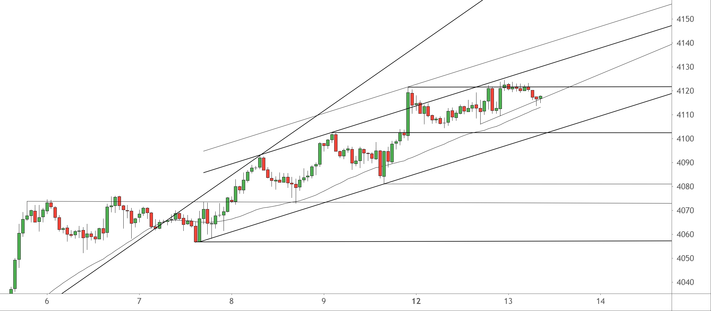 Der SPX500 kämpft heute Morgen an seinem ganz kurzfristigen Aufwärtstrend bei zur Stunde 4.116,5 um ein erstes Verkaufsignal. Sobald er sich unter diesen Trend absetzt, ist der Weg zunächst frei bis zu den ersten wirklichen unteren Major-Themen und Major-Signalen. Dafür stehen das nächste Vorgängerhoch bei 4.102,5 und der Aufwärtstrend bei 4.102-4.109. In einem ersten Anlauf sind ein Halten und eine Erholung aber noch wahrscheinlich. Dieses Doppelsignal würde die Aufwärtsrallye aber vorläufig beenden und in eine übergeordnete Korrektur lenken. Die nächste Unterstützung verläuft dann erst bei 4.081, die richtige Major-Unterstützung gar erst bei 4.056 Punkten. – Nach oben kann sich der SPX500 heute noch einmal befreien, indem er noch einmal über den Widerstand bei 4.021,5 ausbricht, woran er in der Nacht noch gescheitert ist. Allerdings bleibt das Aufwärtspotential jetzt überschaubar, wahrscheinlich schon auf den ursprünglichen Aufwärtstrendkanal bei 4.130-4.137 oder spätestens auf den erweiterten Kanal bei 4.139-4.146.