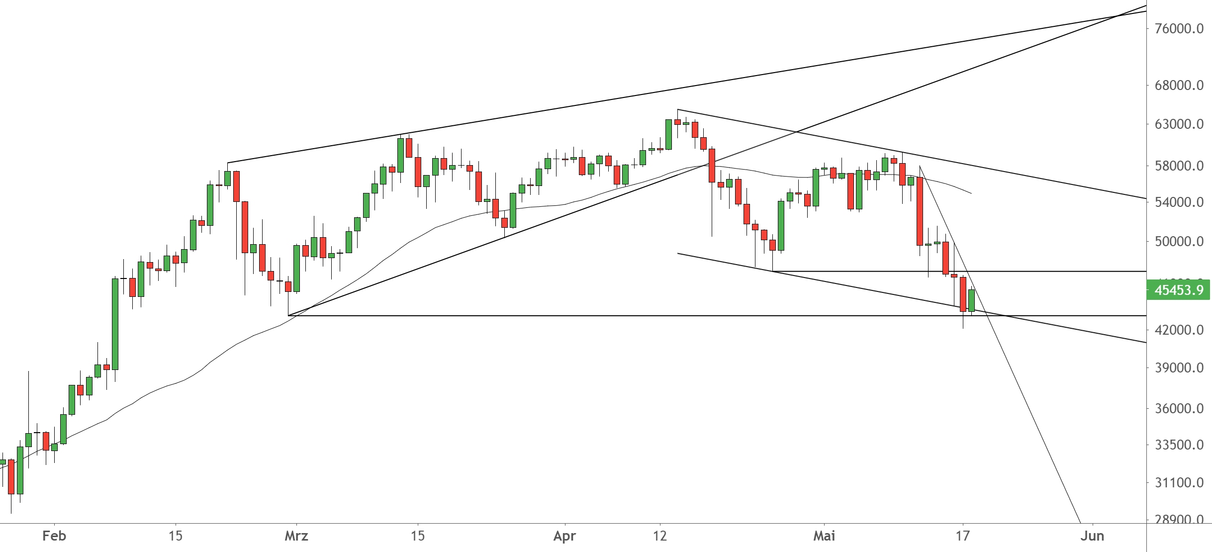 BTCUSD hat prädestiniertes Korrekturziel jetzt aktuell erreicht!