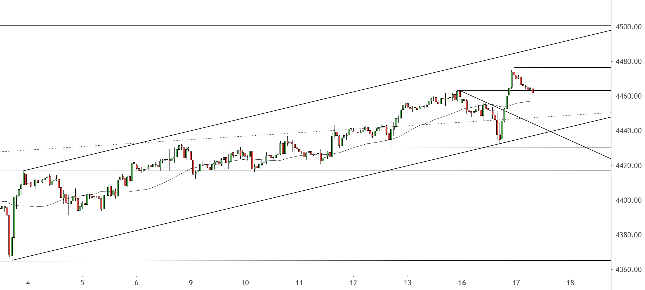 Major-Widerstand: 4.463,25 Punkte / 4.476,5 Punkte / 4.487,5-4.492 Punkte