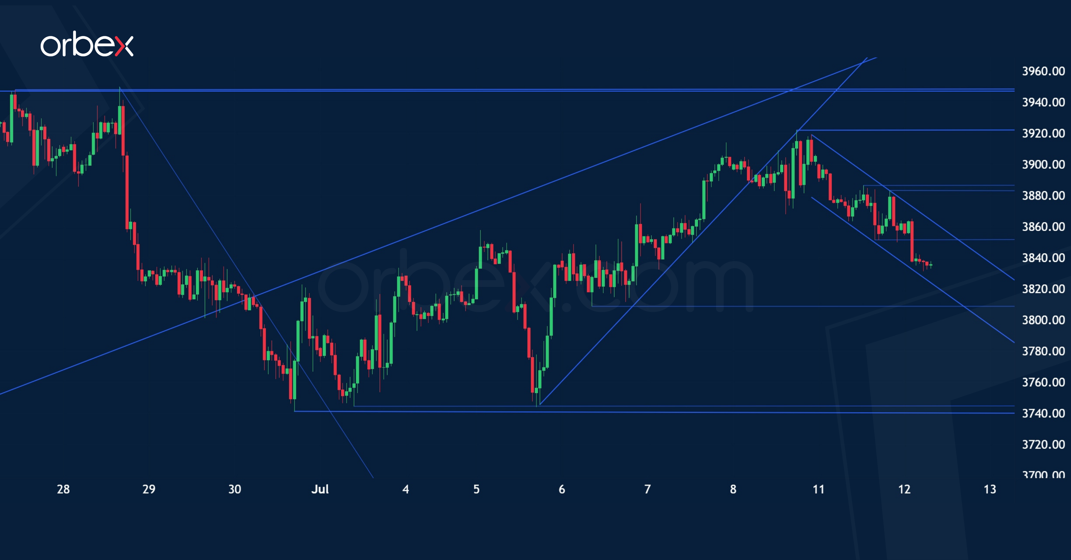 Major-Widerstand: 3.851,5 Punkte / 3.863-3.841 Punkte / 3.883-3.886,5 Punkte