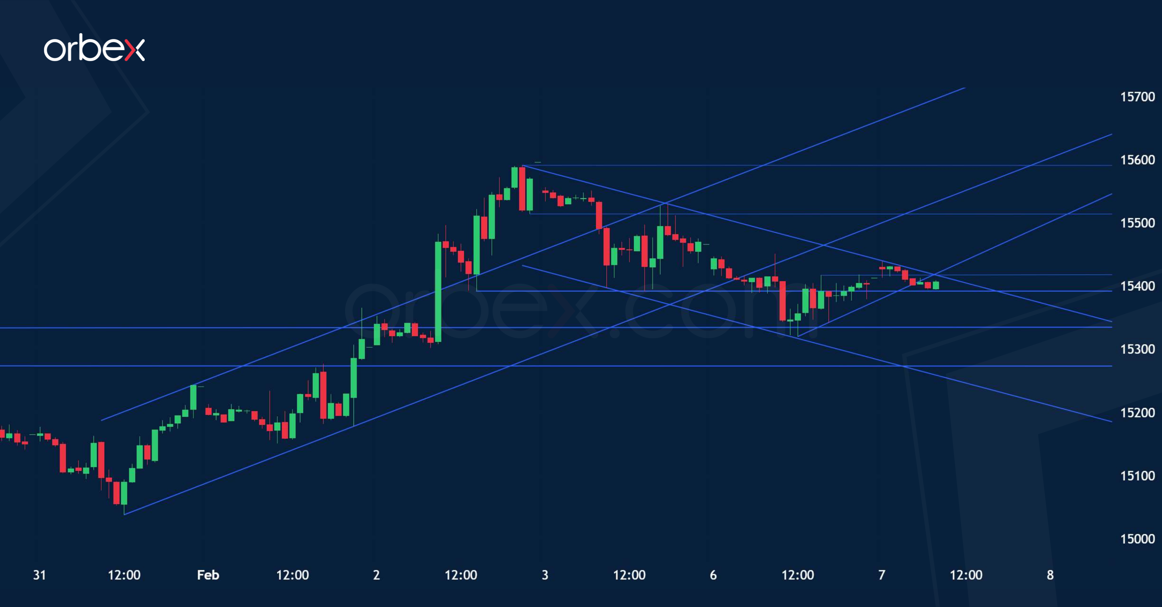 Der GER40 kämpft vorbörslich die erste Richtungsentscheidung des Tages aus. Die Signalrange ist sehr eng, so dass eine Entscheidung daher spätestens mit der DAX-Eröffnung fallen sollte. – Zunächst zur bullishen Alternative. Der GER40 muss eigentlich nur über den nahen Abwärtstrend bei 15.417-15.375 und bestätigend über das vorletzte gestrige Erholungshoch bei 15.417 ausbrechen. Mit diesem doppelten Kaufsignal wird ein bullishes Setup hergestellt, das dem GER40 über den Tag hinaus auch wieder Perspektiven nach ganz oben auf neue Highs über 15.591 eröffnet. Nach dem doppelten Kaufsignal hat er zunächst freie Bahn bis zum einzigen Widerstand bei 15.514. – Nun zur bearishen Alternative: Mit dem Bruch des kurzfristigen Aufwärtstrends steht am Morgen schon ein erstes Verkaufsignal geschrieben. Noch wichtiger ist jedoch das bestätigende zweite, das von einem erneuten Ausbruch unter die Major-Unterstützung bei 15.392 ausgelöst wird. Danach hat der GER40 dann aufreizend leicht freie Bahn nach unten. Auch die gestern noch bewährte Major-Unterstützung sollte dann nicht mehr dauerhaft halten. Die nächste Zielalternative ist die Major-Unterstützung bei 15.274. Auch der Abwärtstrendkanal erlaubt heute schon bis zu 15.260-15.217 Punkte.