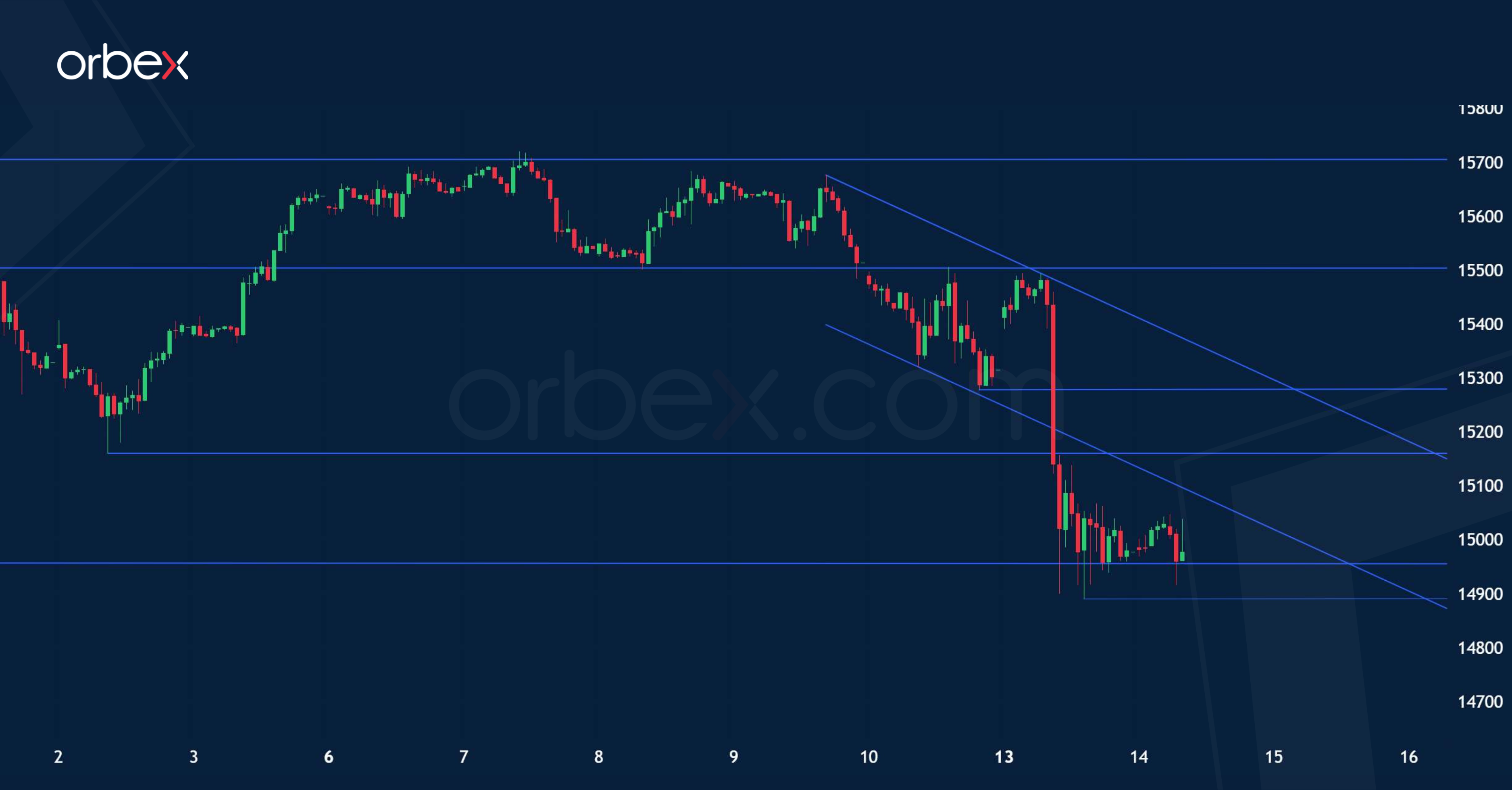 Der GER40 (03/23) kämpft nach seinem Absturz schon seit gestern mehrfach und verbissen um die absolute historische Major-Unterstützung bei 14.961. Die mehrfachen reflexartigen False-Breakouts sind statthaft und zeigen, dass der Markt bisher noch bereit ist, auf diesem Niveau dagegenzuhalten. Doch sobald es heute zu einer echten Absetzbewegung und neuem Druckaufbau auf Stundenbasis kommt, setzt der GER40 seinen gestrigen Absturz fort, und das zunächst mit einem völlig unbekannten Ziel. Denn weitere Unterstützungen gibt es dann keine mehr. Auch das gestrige Low bei 14.890 ist keine tragfähige Unterstützung, sondern allenfalls als Trigger für ein False-Breakout interessant. Die Lage bleibt also höchst brisant! – Erste vorsichtige Entlastung ergibt sich mit einer Rückkehr in den Abwärtstrendkanal bei heute 15.097-15.030, wobei ein Pullback an den Kanal zunächst aber auch antizyklische Chancen auf der Shortseite bringt. Eine Rückkehr in den Kanal dürfte die Erholung anfachen. Der nächste Major-Widerstand verläuft dann bei 15.160. Mehr drängt dich zwar nicht auf, doch die nächsten Zielthemen verlaufen am Widerstand bei 15.278 und am Abwärtstrend knapp darüber.