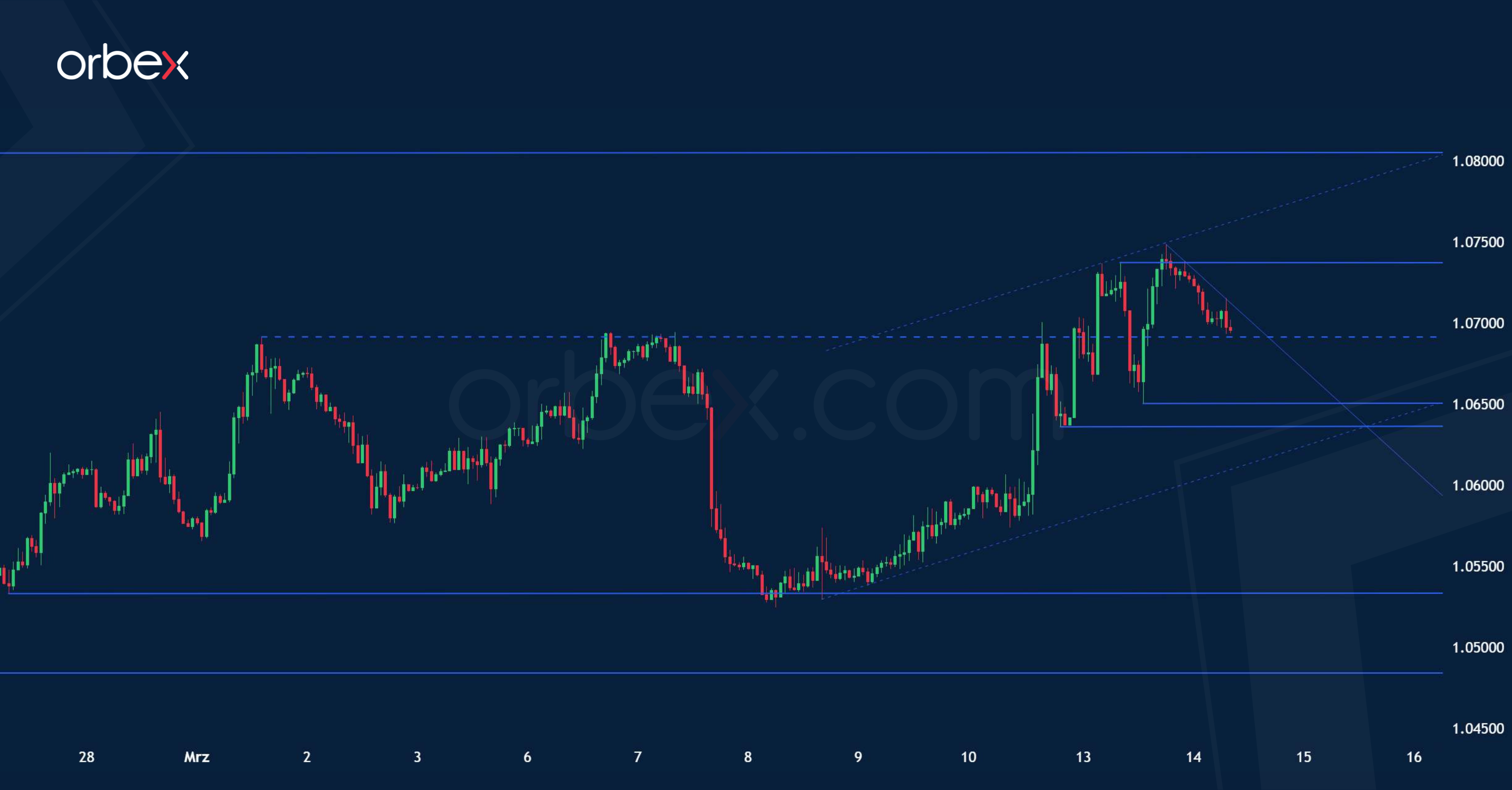 Major-Widerstand: 1,0737 USD / 1,0805 USD