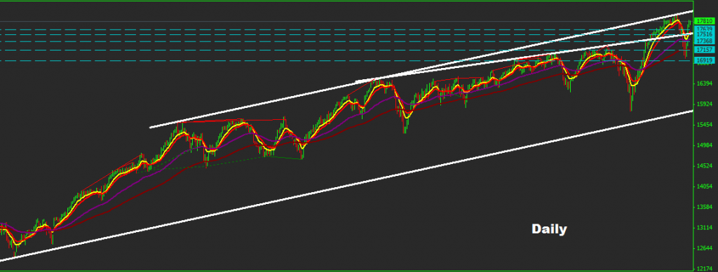 as long as market holding trades above 17000 a rebound correction may be expected toward 17700 zone , below 17000 expect 16600-700 zone