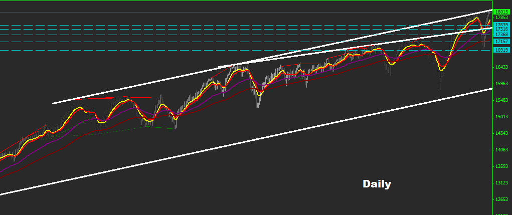 market managed to sustain rebound where managed to hit our target 17700 , while market sustain uptrend movement where resistance of long-run uptrend channel laying at 1800-100 zone