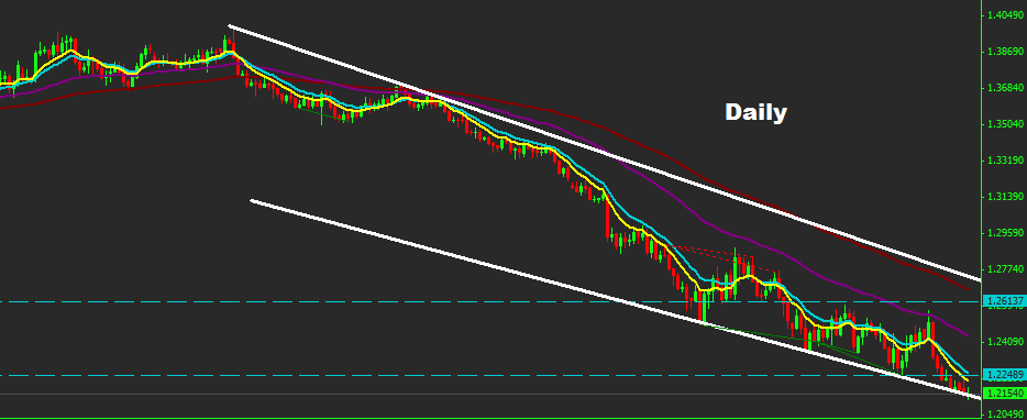 market managed today to hit 1.2123 low while market still holding trades above support level of the downtrend channel as we see over the chart