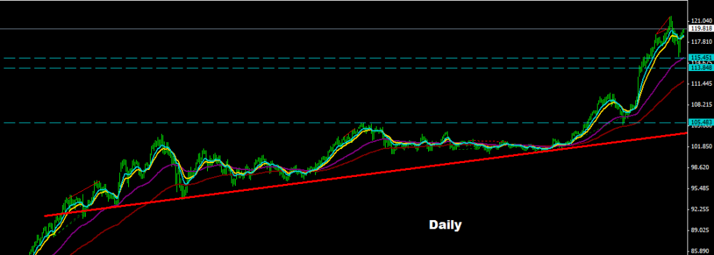 the coming short-run trading zone may have big range deviate between 113.00 – 124.00 zone , where 115.00-50 and 113.00-80 would consider as good zone to re-long-buy the market