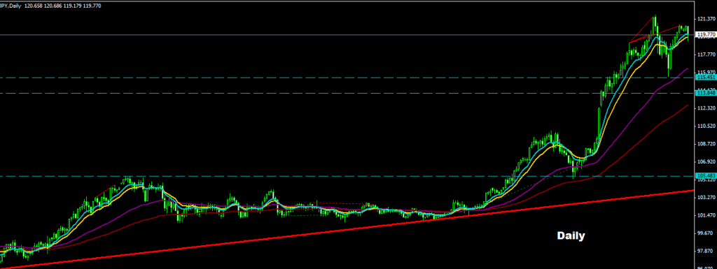 market managed to obtain drop correction after testing resistance level of 120.80 , while market still holding trades above support 119.00-10 zone