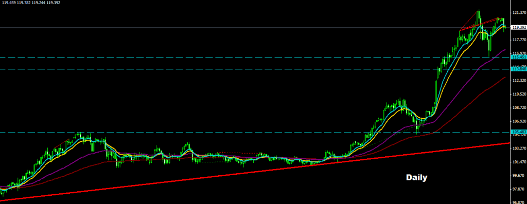 as long as market holding trades above 119.00 the short-run uptrend movement will sustain , while any daily close below 119.10 may activate drop movement toward 116.50 and 113.80 levels