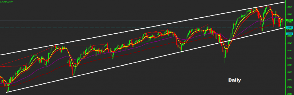 market managed again to re-test support zone of 17150-200 while the rebound market was capped at 17525-85 zone