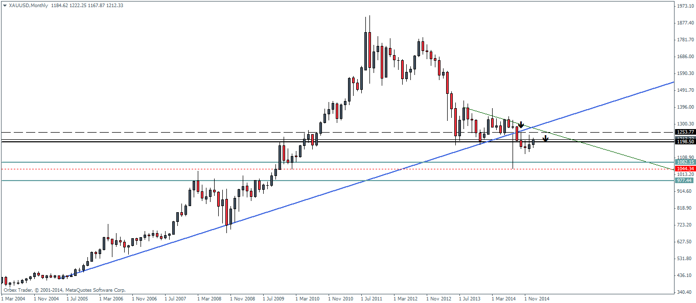 The rally towards $1250 is something which we have noted in past weekly Gold analysis as well, which marks the possible correction on the longer term time frame and one which could signal an eventual decline towards the lows breaking below $1100.