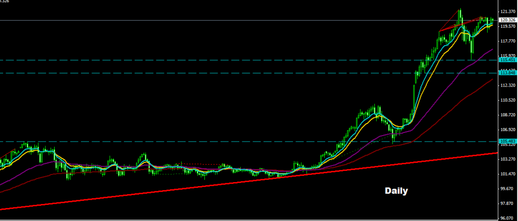 market managed to obtain drop correction after testing resistance level of 120.80 , while market still holding trades above support 118.85 zone