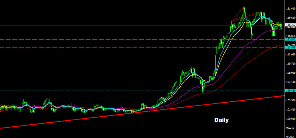 market managed to jump above 118.00 which indicating that the last base around 115.50 may be the support base for the coming uptrend wave