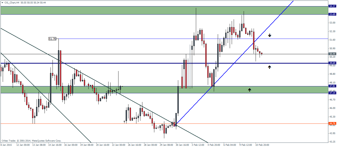 The 4-hour chart also points to a possible consolidation or sideways price action likely in the short term, as we expect price to bounce off the 51.70 through 49.69 and potentially down to 47.81