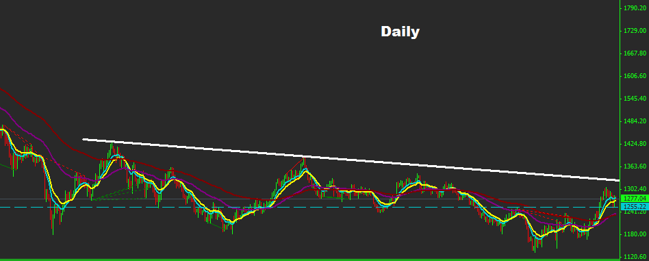 market managed to obtain drop correction where managed to test 1255 support zone , while as long as market holding trades above 1238 another rebound toward 1320-30 zone will be expected , below 1235 market may sustain drop toward 1180
