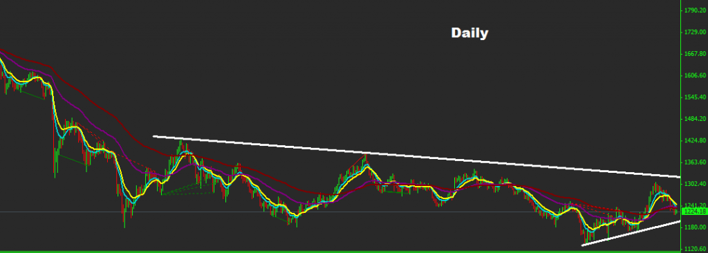 as long as the daily close sustain below 1270 the downtrend wave will sustain toward 1180 , any daily close above 1270 will restore the short-run uptrend movement