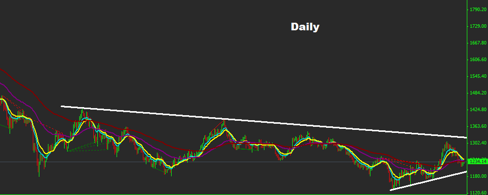 as long as the daily close sustain below 1270 the downtrend wave will sustain toward 1180 , any daily close above 1270 will restore the short-run uptrend movement