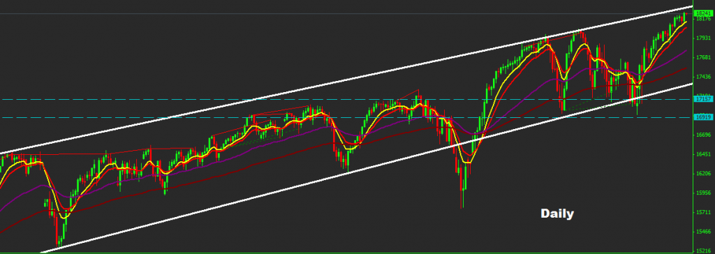 Market managed yesterday to enter our targeted zone 18250-300 which will consider as take profit zone for the long-buy positions