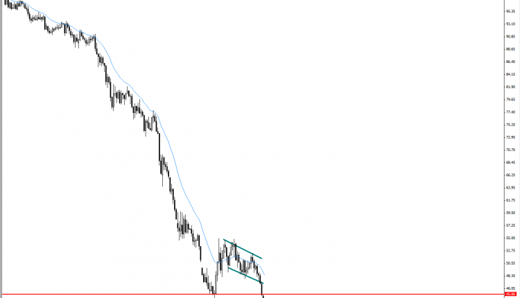 market has broken the recent major support of 45s levels as shown ( previously had broken the consolidation pattern ) ; on the short-term we do expect a lower levels of 42 and 38 respectively as long as market below 48 ( which considered on the mid-term pivotal area )