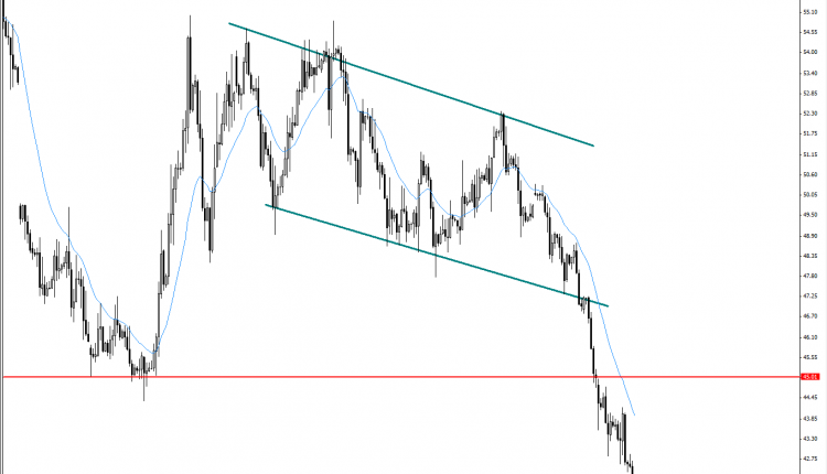 market has broken the recent major support of 45s levels as shown ( previously had broken the consolidation pattern ) ; on the short-term we do expect a lower levels of 42 and 38 respectively as long as market below 48 ( which considered on the mid-term pivotal area )