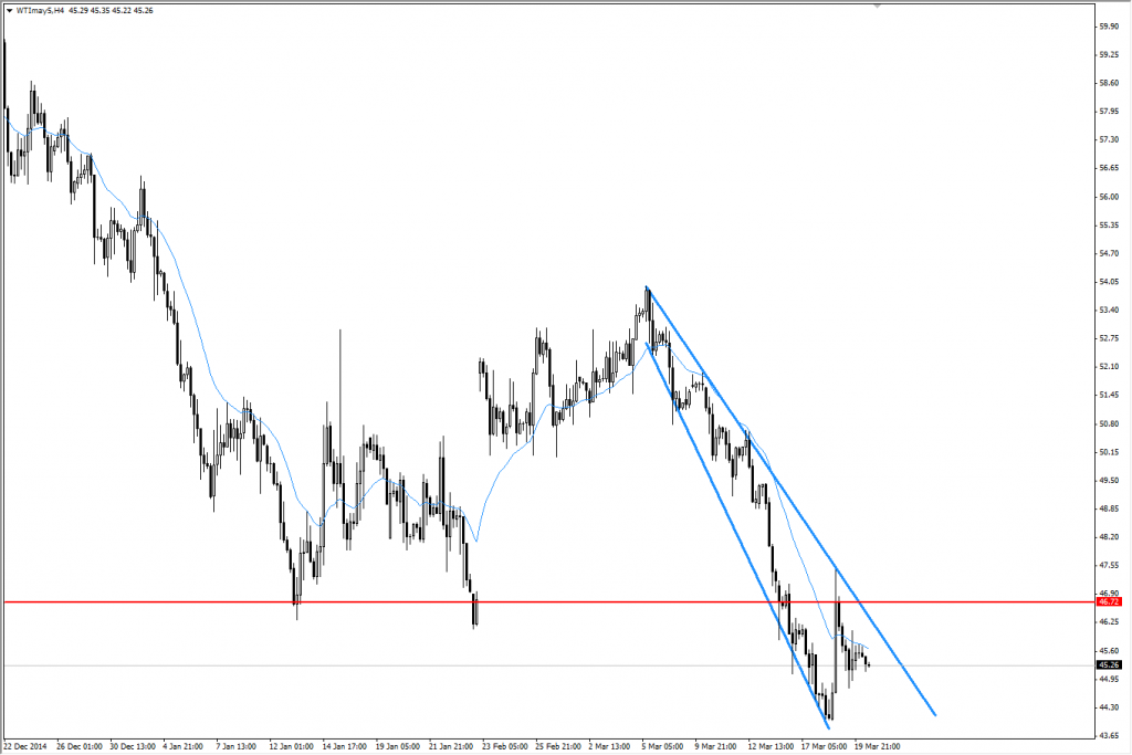 Market has corrected to 47s levels yesterday , but has been sold of once it touched the downtrend as shown on the chart ; the more downward pressure on oil still existing and market fundamental of energy sector has not been changed which mean the downtrend is expected – or to be more accurately expect a trading range between the 43 and 46.70 levels with downward slope of that range .