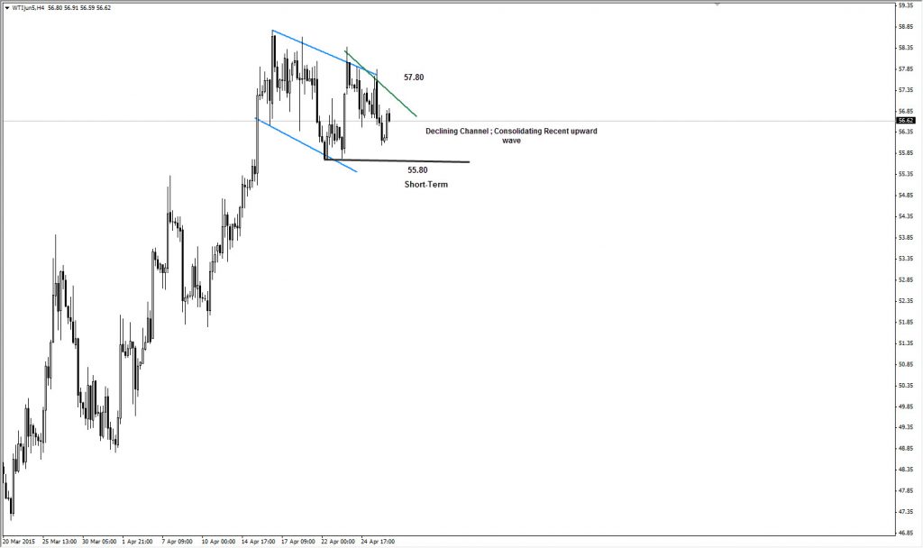 On the short-term view ; the market has succeeded to continue pushing up the prices upwards gradually to approach the key resistance 56.50 and still above it, and now the prices is stuck between key levels represented at 56.00 intraday support and the minor bearish channel’s resistance located at 56.90, thus, the price needs to breach one of these levels to detect the next track clearly, Therefore, our bullish overview has been weakened and we on the side of coming drop to lower levels as a re-test of the broken resistances ( now as a support ) which would be the levels 52.50 and 50.50 as major broken areas .,