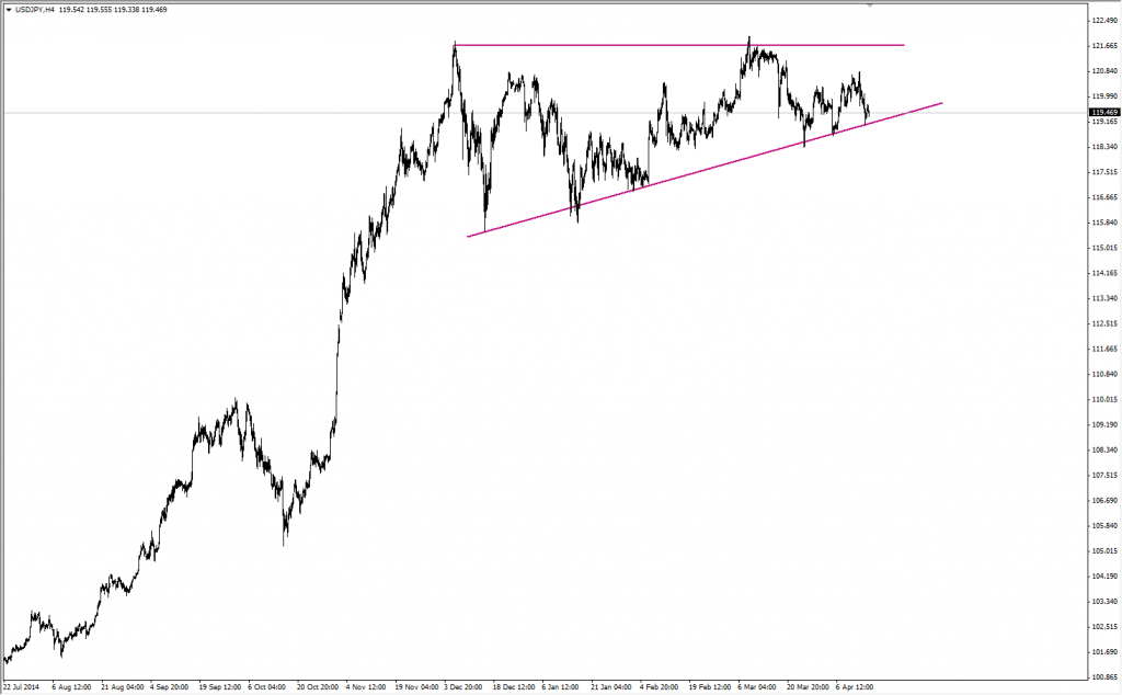 as market has recorded a higher price over 120 yen per us dollar , the upward for the longer term view is more probable , however , the market of this pair is also trading in a range awaiting more data to decide its mid-term course of action – so we do expect and see a range market sloping upward on the short-view. However , 121.50 considered the major mid-term resistance the breakout of that levels ( which is the most probable ) would push the market further upward .