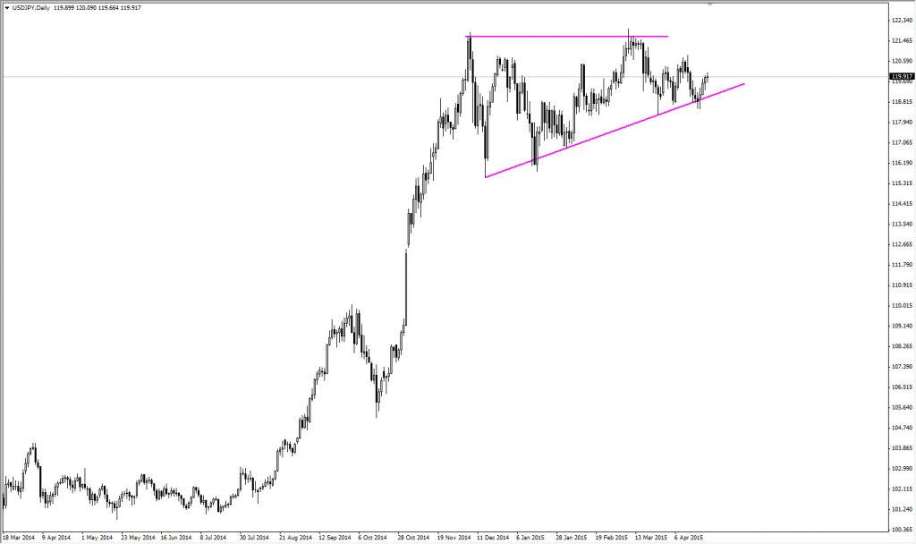as market has recorded a higher price over 120 yen per us dollar , the upward for the longer term view is more probable , however , the market of this pair is also trading in a range awaiting more data to decide its mid-term course of action – so we do expect and see a range market sloping upward on the short-view. However , 121.50 considered the major mid-term resistance the breakout of that levels ( which is the most probable ) would push the market further upward .