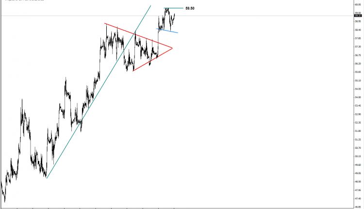 On the short-term view ; the market has succeeded to continue pushing up the prices upwards gradually until it has penetrated the key resistance 56.50 ( now considered as a pivotal support )