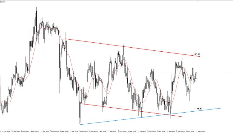 As market has recorded a higher price over 120 yen per us dollar , the upward for the longer term view is more probable , however , the market of this pair is also trading in a range awaiting more data to decide its mid-term course of action – so we do expect and see a range market sloping upward on the short-view as long as the market is trading higher than 117.80 . However , 121.50 considered the major mid-term resistance the breakout of that levels ( which is the most probable ) would push the market further upward .