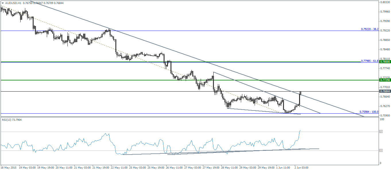 The Aussie reacted bullishly to the event with the AUDUSD trading near 0.767 levels and testing a longer term trend line on the hourly charts while the AUDNZD managed to stay strong above 1.07 levels.