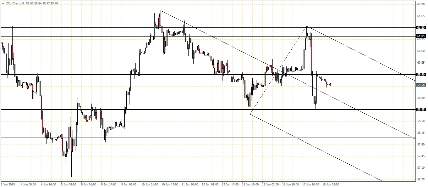 The WTI Crude Oil declined yesterday from daily highs near $61.05, to post a daily low to $59.05 before stabilizing after the FOMC statement.