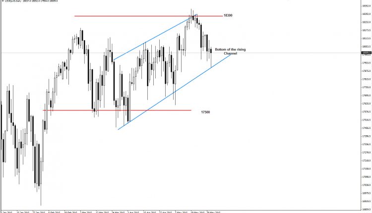 On the longer-term as long as market trading higher than 17,000 $ dollar for the index ;then it is an buy opportunity to target $20,000. . However , on the chart we can see the market was trading within the channel ; however , the market now on the bottom of that short 0- term channel which means expected more upside movement , in case market did not succeeded to respect that channel then the penetration would target the level of 17500