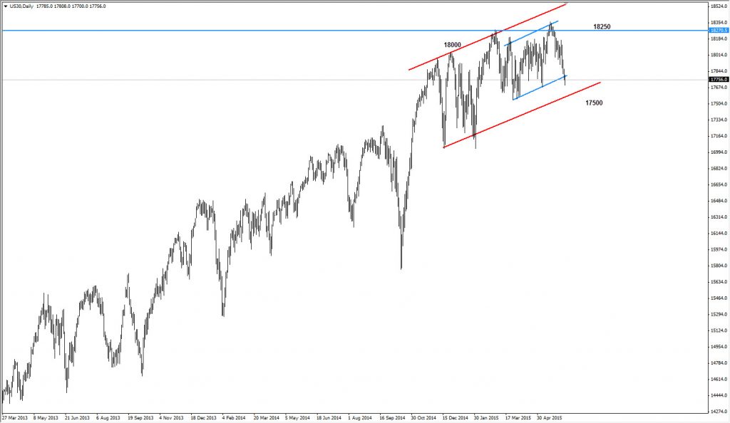 On the longer-term as long as market trading higher than 17,000 $ dollar for the index ;then it is an buy opportunity to target $20,000. . However , on the chart we can see the market was trading within the channel ; however , the market now on the bottom of that short – term channel which means expected more upside movement , in case market did not succeeded to respect that channel then the penetration would target the level of 17500 and by penetrating that level the sell-ff mode would be accelerated