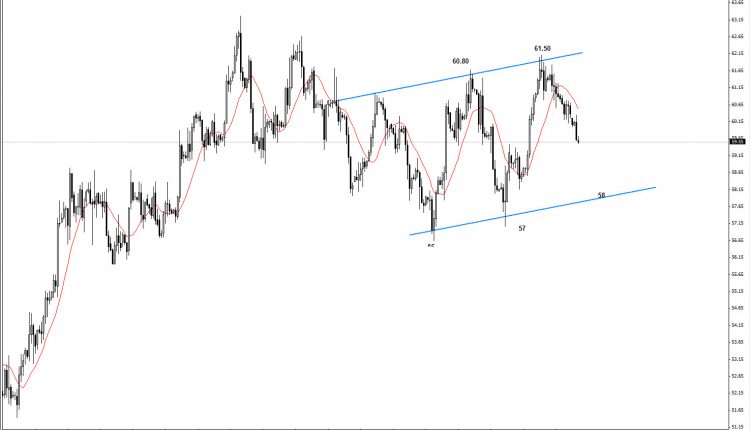So on the short-term the market has rebounded back to the support levels as shown (58.50) ; however , as the market trading higher than 58s then we do expect further advance to re-test recent high and even higher.