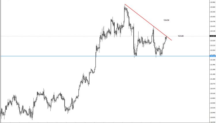 Market has penetrated the resistance level of 121.50 and the consolidation pattern as well , and succeeded to confirm breaching the previously recorded top, which opens the way towards the continuation of the main bullish trend , now the buying pressure still exist and accumulated which mean the way is open for the market to reach the levels of 125/126 ; however , by the recent development we do expect the market to enter a range phase between the levels of 123/126. But if the price keep trading below 123.20 level, which puts the price under more bearish correctional pressure, to extend the negative targets towards 122.40 then 121.5.